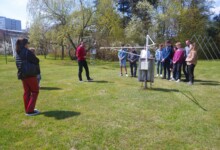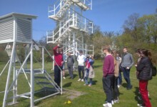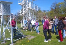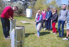 W dniu 28.04.22 r. uczniowie liceum w ramach projektu Erasmus+ ACT BEFORE CLIMATE CHANGE, CHANGE OUR LIFES (ABECCCOL) odwiedzili pod opieką pani Katarzyny Kuzary Zakład Klimatologii i Ochrony Atmosfery Uniwersytetu Wrocławskiego, po którym oprowadził grupę dr hab. Marek Błaś. W pierwszej części wizyty wysłuchali wykładu pt. „Jak oddycha jaskinia”, dzięki któremu przypomnieli sobie informacje dotyczące budowy jaskini, działania procesów krasowych i powstających w ten sposób form rzeźby terenu. Dowiedzieli się również o tym, jakie mikroklimat panuje w jaskiniach krasowych, w jaki sposób zachodzi w nich proces wymiany powietrza i jak wpływa na faunę jaskiń. Po wykładzie udali się do ogródka meteorologicznego, gdzie zapoznali się z budową urządzeń pomiarowych, ich zastosowaniem oraz z zasadami prowadzenia obserwacji meteorologicznych.